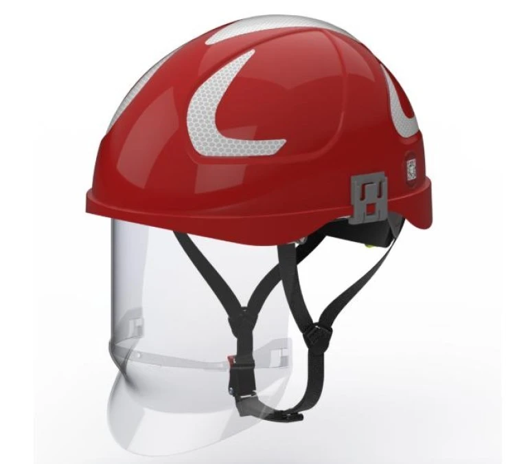 Hubix czerwony hełm elektroizolacyjny z osłoną twarzy (ruchomą) W1 klasy 1 Box‑test, do 20 kV AC / 1,5 kV DC SECRA H058S
