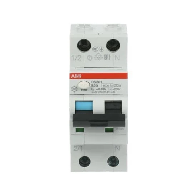 Wyłącznik różnicowo-nadprądowy 1P+N char. B 20A 6kA 30mA A bezzwłoczny DS201 2CSR255180R1205