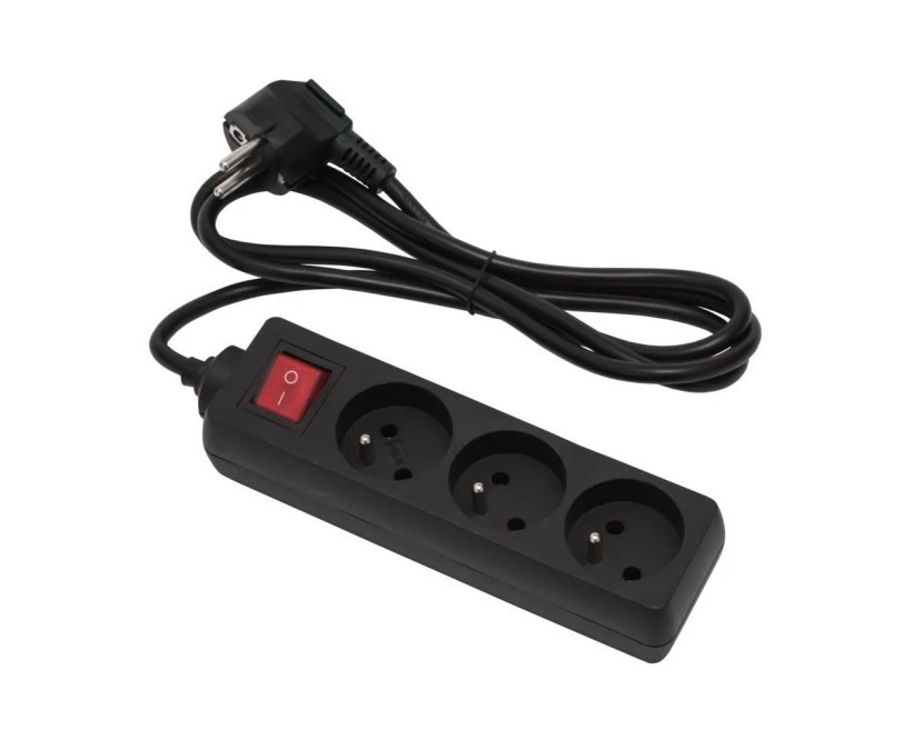 1. Przedłużacz 3 gniazda z uziemieniem i wyłącznikiem czarny 1,5m EPS-301,5W-2 ELGOTECH 25.57