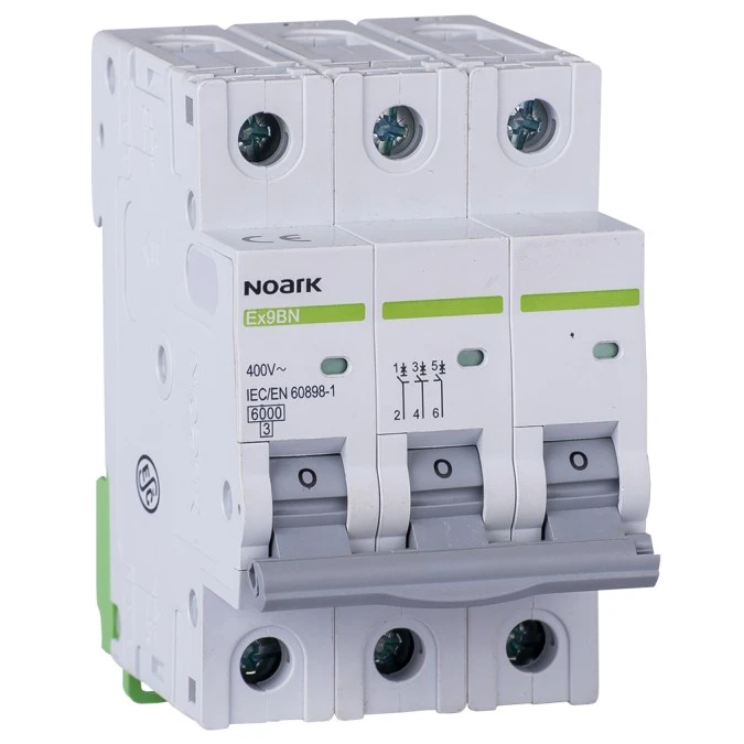 5. Wyłącznik nadprądowy S bezpiecznik 3-fazowy C10 (C 10A) 3-biegunowy 3P (400V AC) 3-modułowy NOARK 45.74