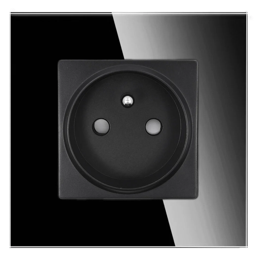 Gniazdo elektryczne pojedyncze z bolcem - szklana ramka - czarne - Tawoia Glass