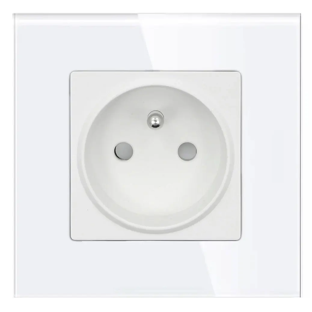 Gniazdo elektryczne pojedyncze z bolcem - szklana ramka - białe - Tawoia Glass