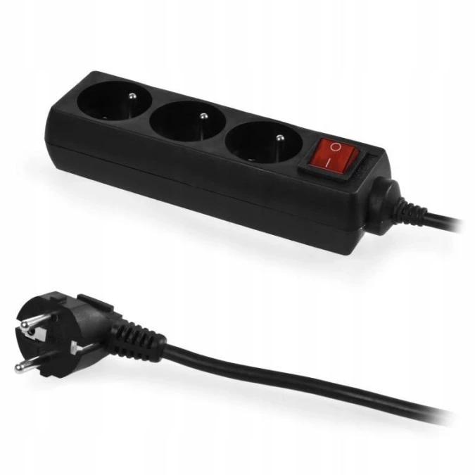 3. Przedłużacz elektryczny Listwa zasilająca na 3 gniazda [2P+Z] z wyłącznikiem czarna 1,5m ECO PLASTROL 22.35