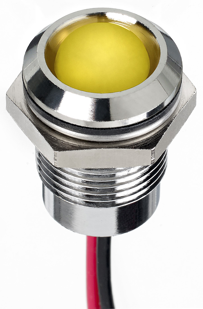 4. Lampka kontrolna do montażu panelowego 12V dc, Żółta 14mm LED Chrom Wyprowadzenia RS PRO 149.13