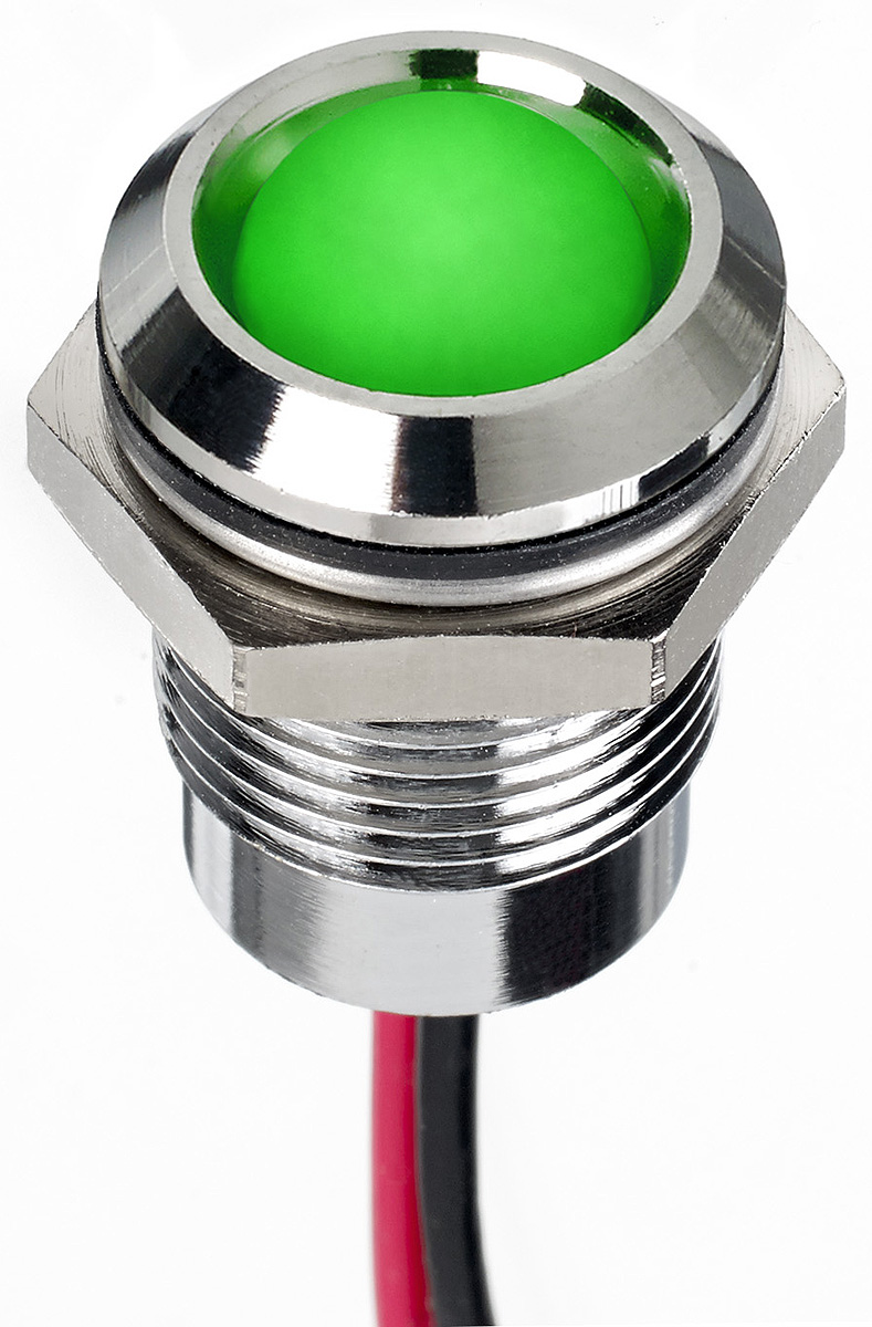 6. Lampka kontrolna do montażu panelowego 24V dc, zielona 14mm LED Chrom Wyprowadzenia RS PRO 149.13