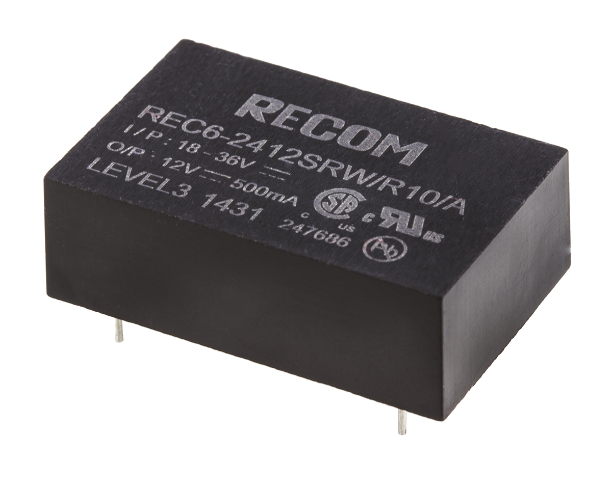 1. Przetwornica DC-DC, 6W, Uwe 18 → 36 V DC, Uwy 12V dc, Iwy 500mA, Recom 4247.22