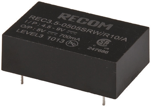 7. Przetwornica DC-DC, 6W, Uwe 4,5 → 9 V DC, Uwy 5V dc, Iwy 1A, Recom Tak 4463.18