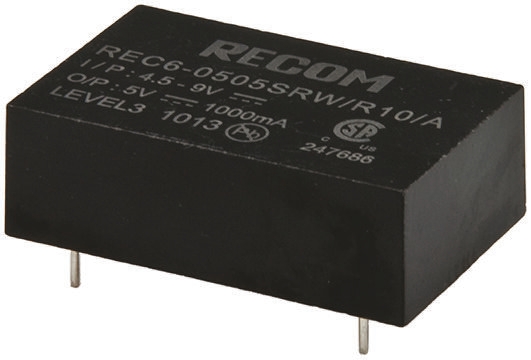 Przetwornica DC-DC, 6W, Uwe 4,5 → 9 V DC, Uwy 5V dc, Iwy 1A, Recom Tak