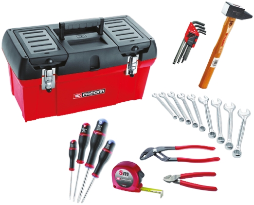 Zestaw narzędzi Facom Konserwacja Młotek, Klucze sześciokątne, Szczypce, Taśma miernicza, Klucz