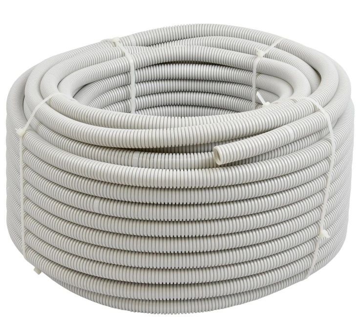 7. Rura karbowana elektroinstalacyjna RKGL 32/24,2mm giętka samogasnąca peszel z pilotem 320N PVC UV szara 25m Tubifor 72.69