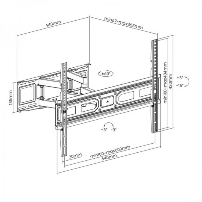 9. UCHWYT DO TV LED/LCD 37-80 40KG AR-90 reg. pion/poziom 67-355mm 85.20