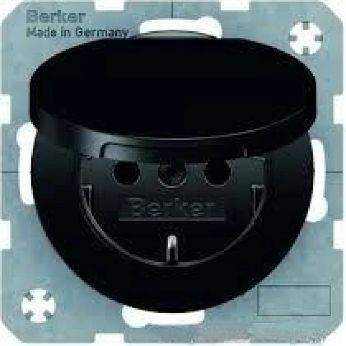 Berker R.1/R.3 Gniazdo SCHUKO z pokrywą czarne połysk 47512045