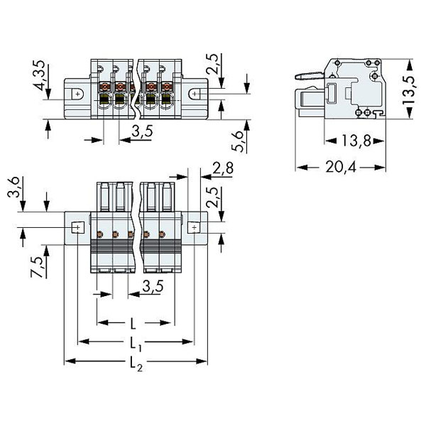 WAGO 2734-102/107-000 Female MCS-MINI 2P 3.5mm Screw Flange Push Buttons