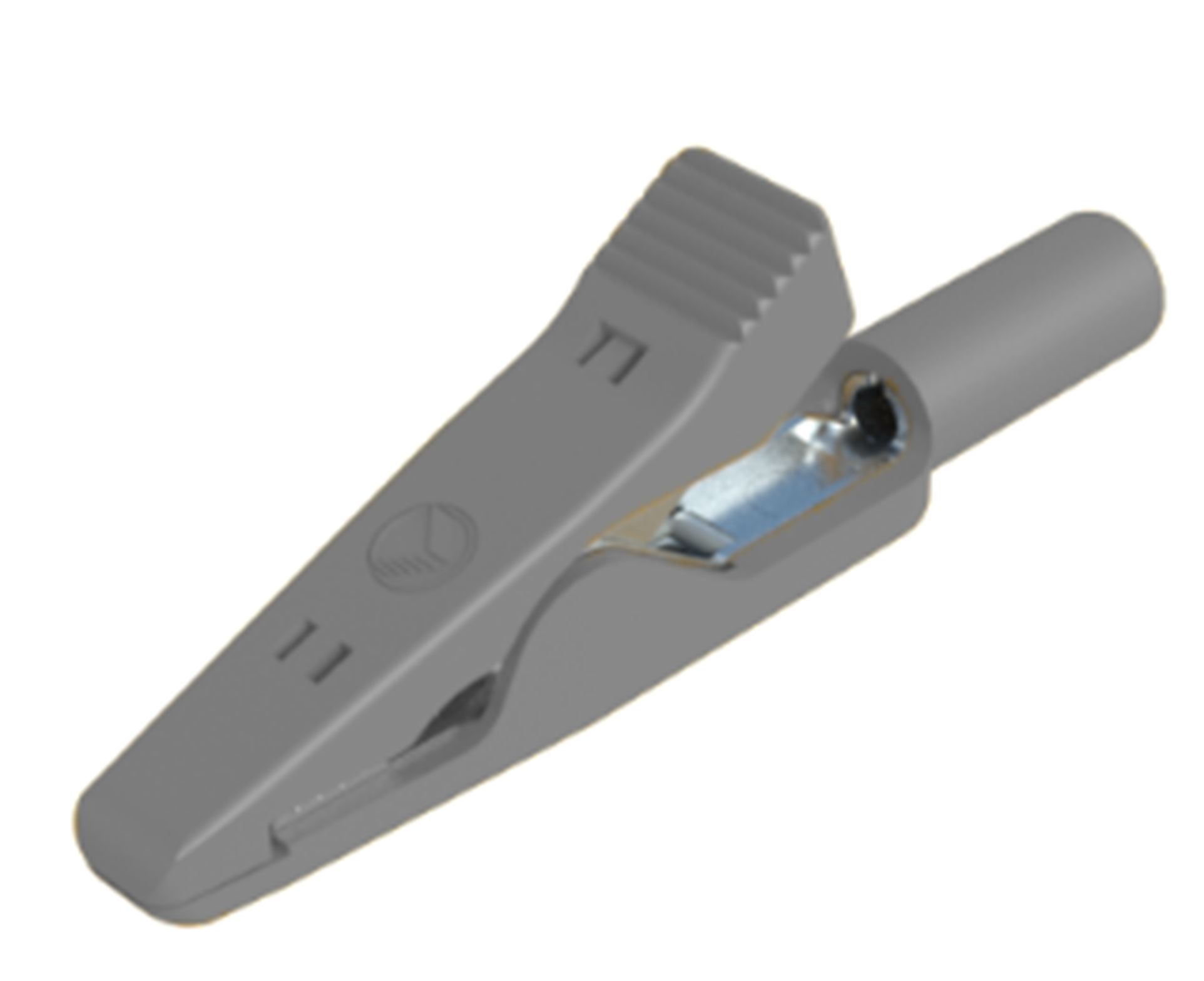 Zacisk krokodylkowy 8A izolowany 4mm Szary Hirschmann Test & Measurement