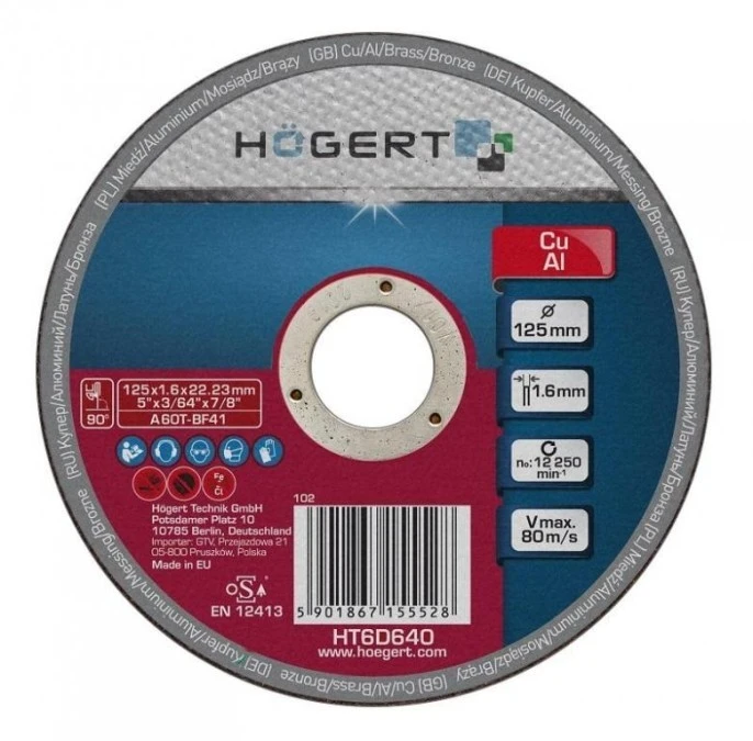 5. Tarcza korundowa do cięcia miedzi i aluminium 125 x 1.6 x 22.23 mm 4.96