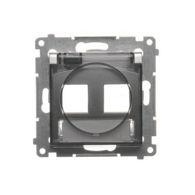 13. Simon 54 Pokrywa gniazd teleinformatycznych IP44 na Keystone podwójna z polem opisowym, klapka transp. srebrny mat DKP2B.01/43A 28.93