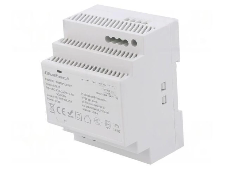 QOLTEC-50923 Zasilacz impulsowy: na szynę DIN, 92W, 24VDC, 3,83A, 220-240VAC