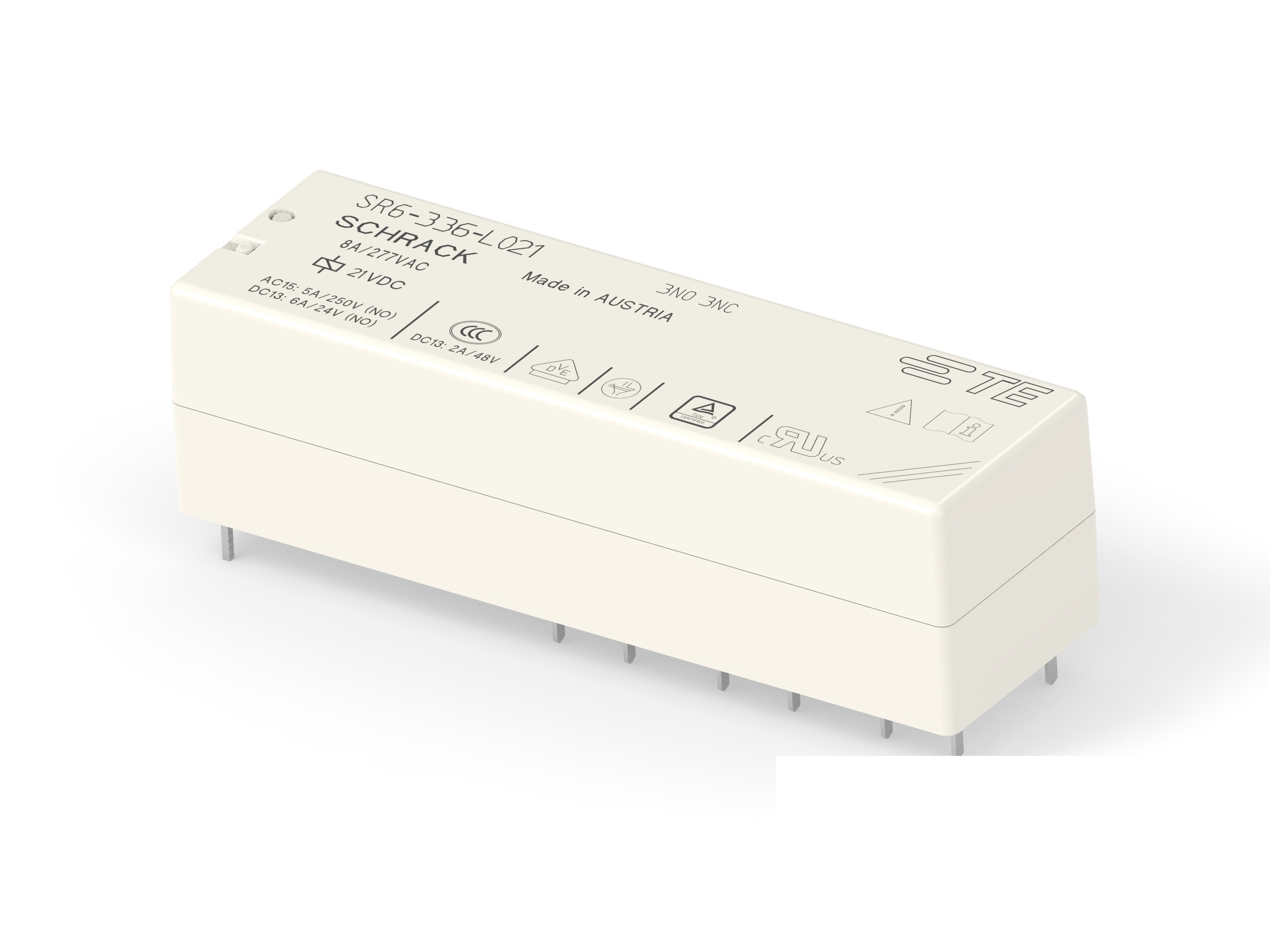 10. Przekaźnik z wymuszonym prowadzeniem styków 21V dc 3PDT TE Connectivity 700mW, montaż PCB Ω Otwór przezierny 121.01 x250