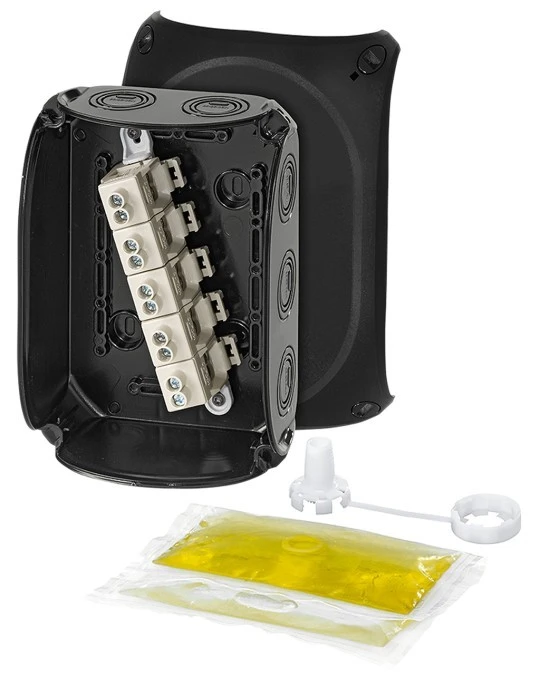 5. Puszka do wypełniania masą uszczelniającą do 10mm2 180x130x77mm czarna WP 1010 G 62000109 643.01