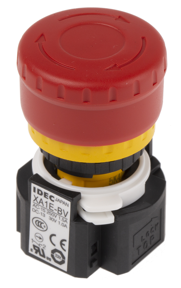 IDEC XA1E-BV413RH-EMO XA Emergency Stop Switch Non-Illuminated TurnPull 1NO-3NC