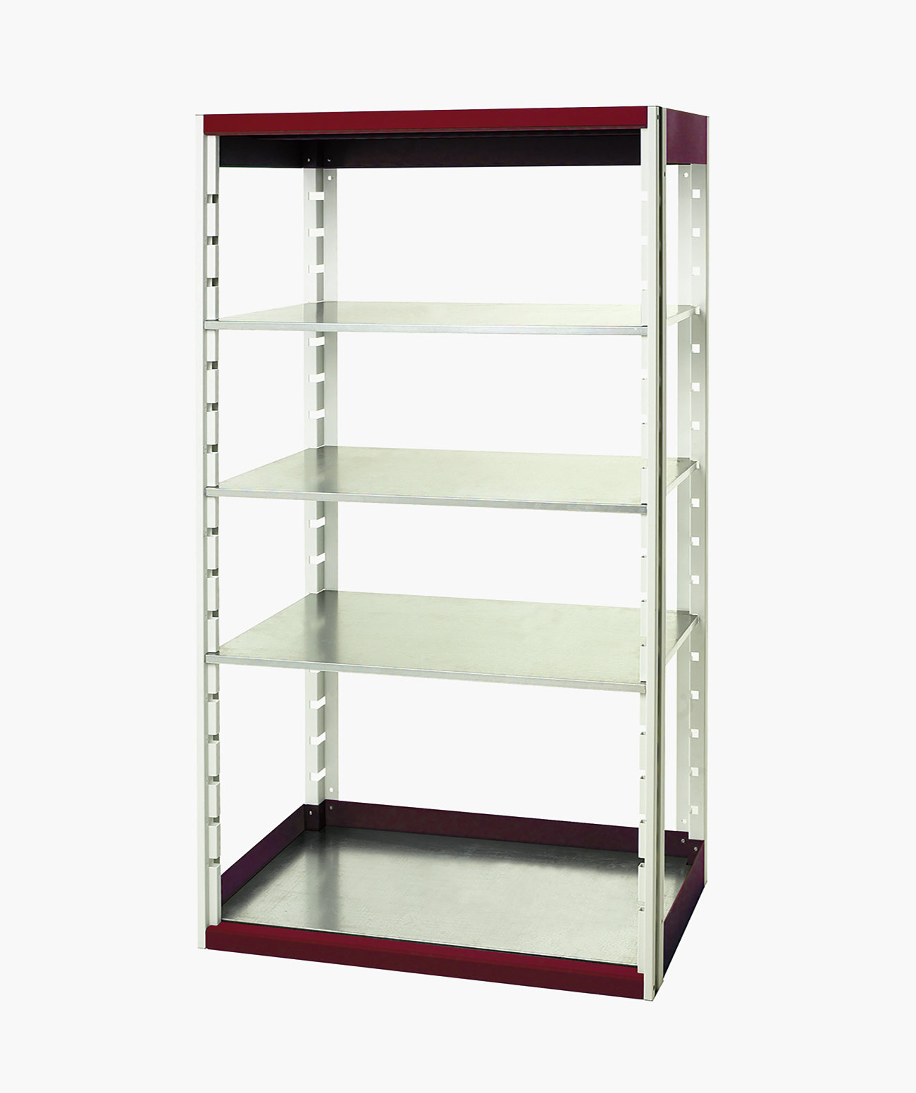 7. Rama stojąca do systemu półek, kolor Czerwony, 4-poziomowy, materiał: Blacha stalowa, 2000mm x 1050mm, 650mm, Bott 4155.08