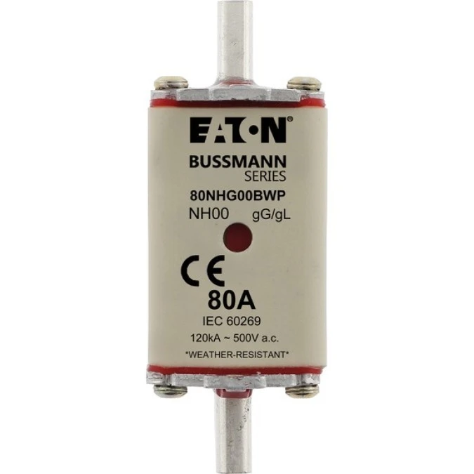 15. Wkładka bezpiecznikowa, nożowa, LV, 80 A, AC 500 V, 120 kA, NH00, gL/gG, IEC, 80NHG00BWP 40.66