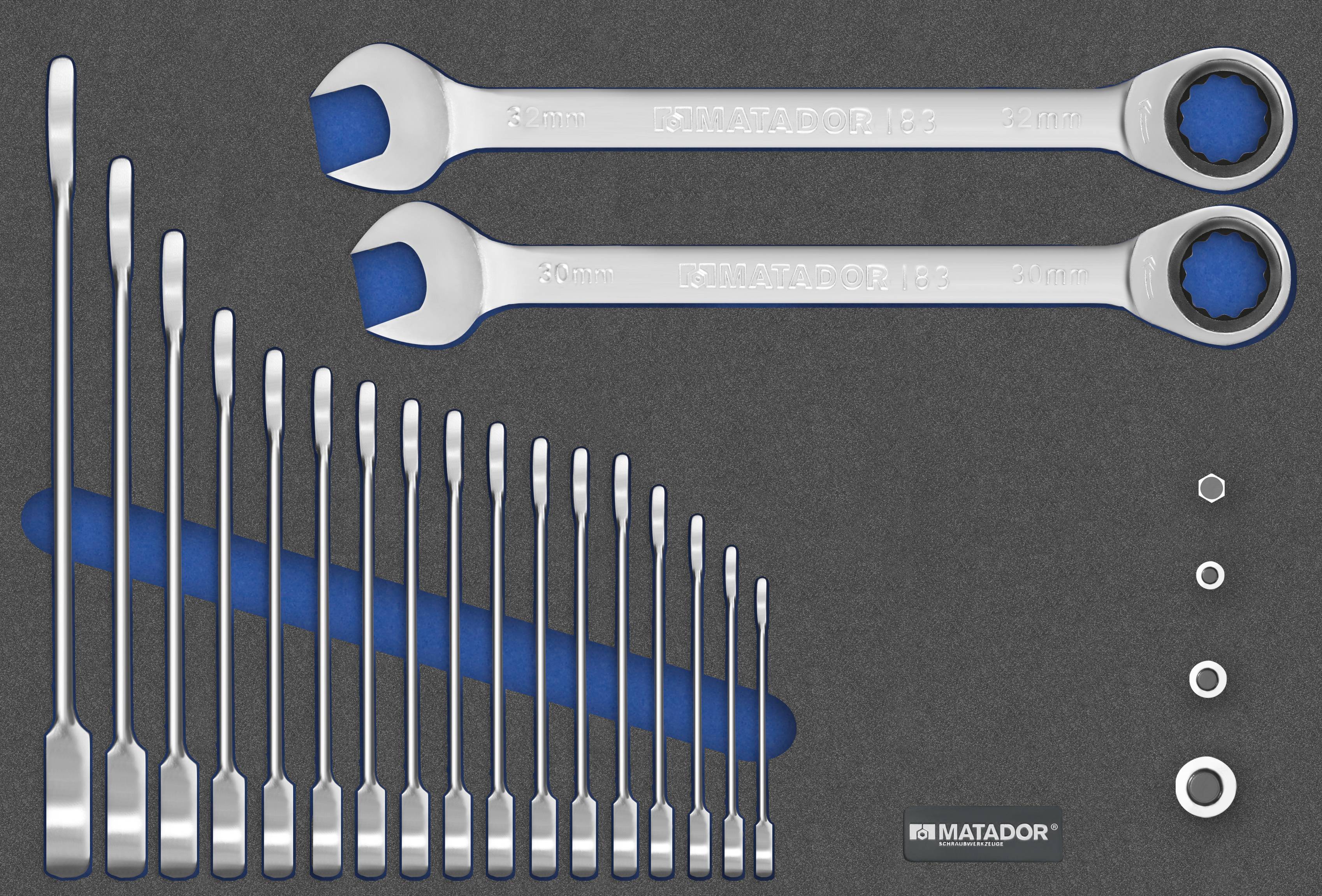Matador Schraubwerkzeuge 81642183 Zestaw kluczy płasko oczkowych z grzechotką 19 szt. Rozmiar klucza (metryczny) (tylko