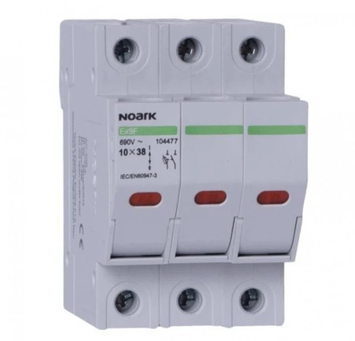 12. Podstawa bezpiecznikowa 100A 3-biegunowa 3P (690V AC) 3-modułowa na wkładki 10x38mm NOARK 64.90