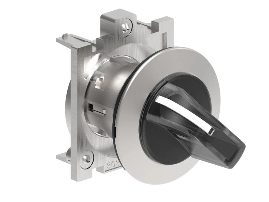 1. Metalowy przełącznik płaski podświetlany 3 pozycyjny 1-0-2 z samopowrotem z 2 do 0 fi 30mm pokrętło krótkie Biały LPFSL1338 174.64