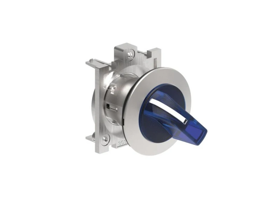 3. Metalowy przełącznik płaski podświetlany 3 pozycyjny 1-0-2 z samopowrotem z 2 do 0 fi 30mm pokrętło krótkie Niebieski LPFSL1336 174.64