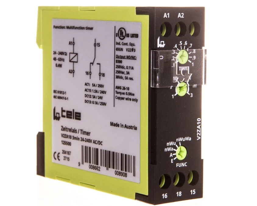 Przekaźnik czasowy 1P 5A 0,3sek-3min 24-240V AC/DC opóźnione wyłączenie V2ZA10 3MIN 24-240V AC/DC 2615224