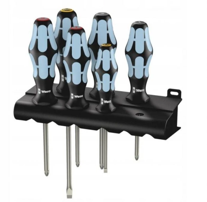 Zestaw wkrętaków ze stali nierdzewnej + wieszak, 6cz