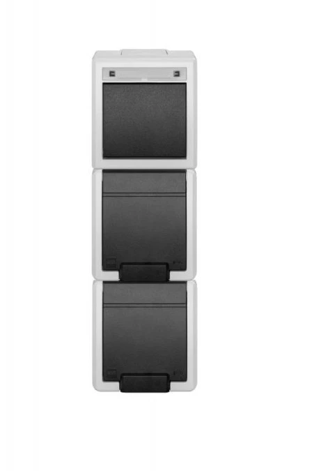 6. Gniazdo zasilające potrójne natynkowe hermetyczne IP55 antracytowe z klapką 3x 2P+Z 16A Aquant 2K 80.37