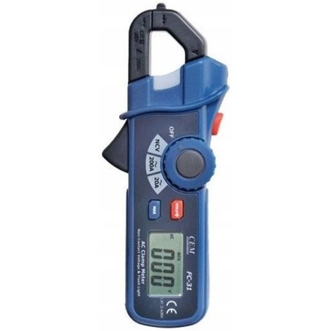 Cyfrowy miernik cęgowy 3w1 prąd AC, detektor napięcia, latarka CEM FC-31
