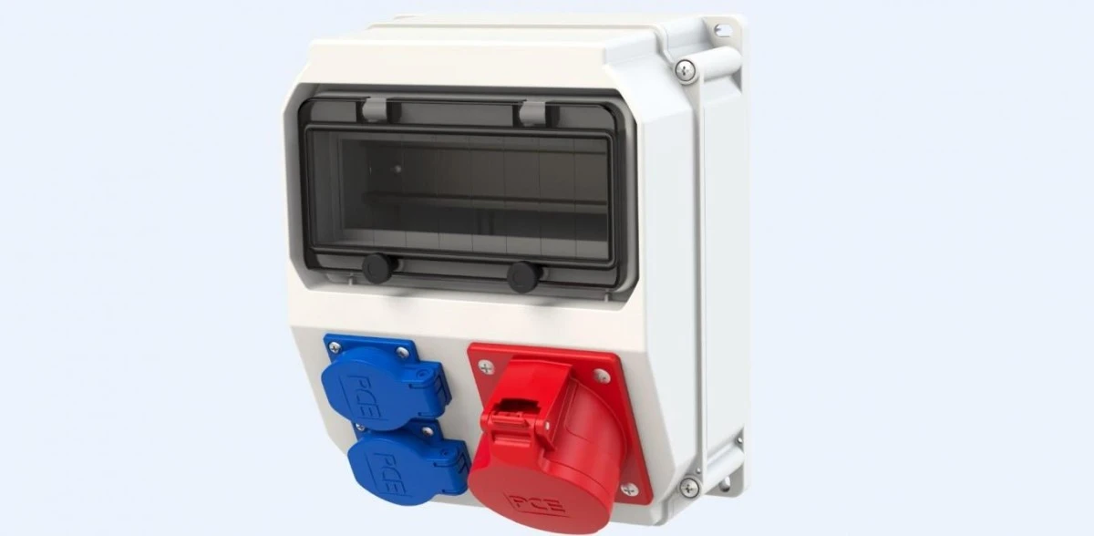 13. Rozdzielnica budowlana ECOLINE hermetyczna IP54 Bez zabezpieczeń + 1x32A/[5P] + 2x230V/[2P+Z] PCE 90EKO008 211.56