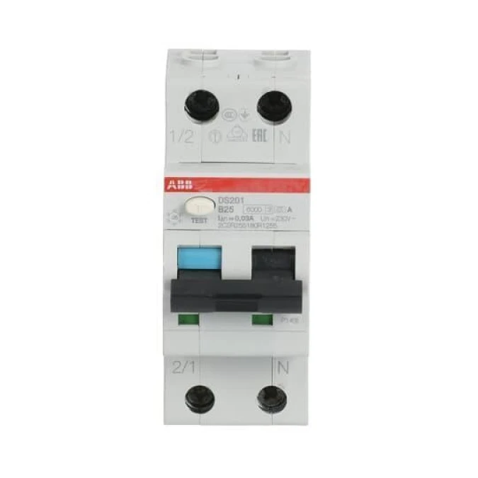 4. Wyłącznik różnicowo-nadprądowy 1P+N char. B 25A 6kA 30mA A bezzwłoczny DS201 2CSR255180R1255 438.10
