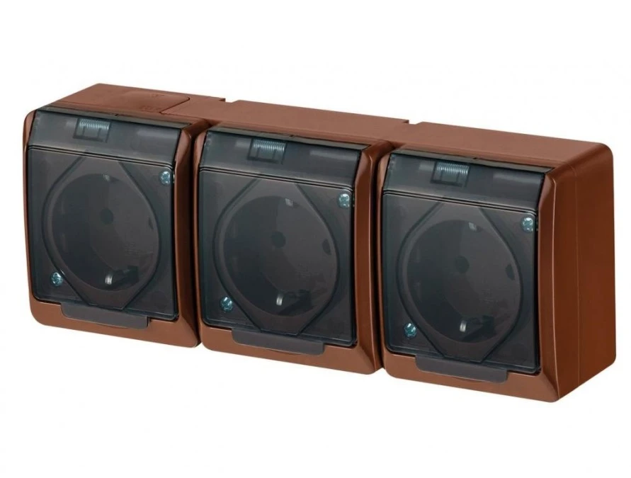 Hermes Gniazdo hermetyczne potrójne z/u Schuko 16A IP44 brązowe 0326-05