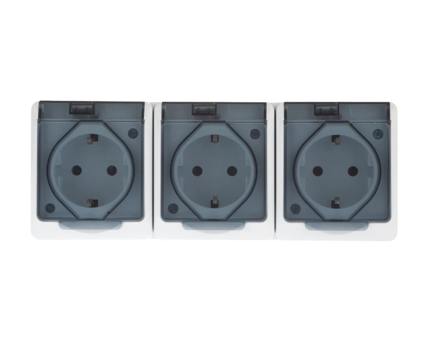 Hermes Gniazdo hermetyczne potrójne z/u Schuko z klapką dymną 16A IP44 białe 0326-01