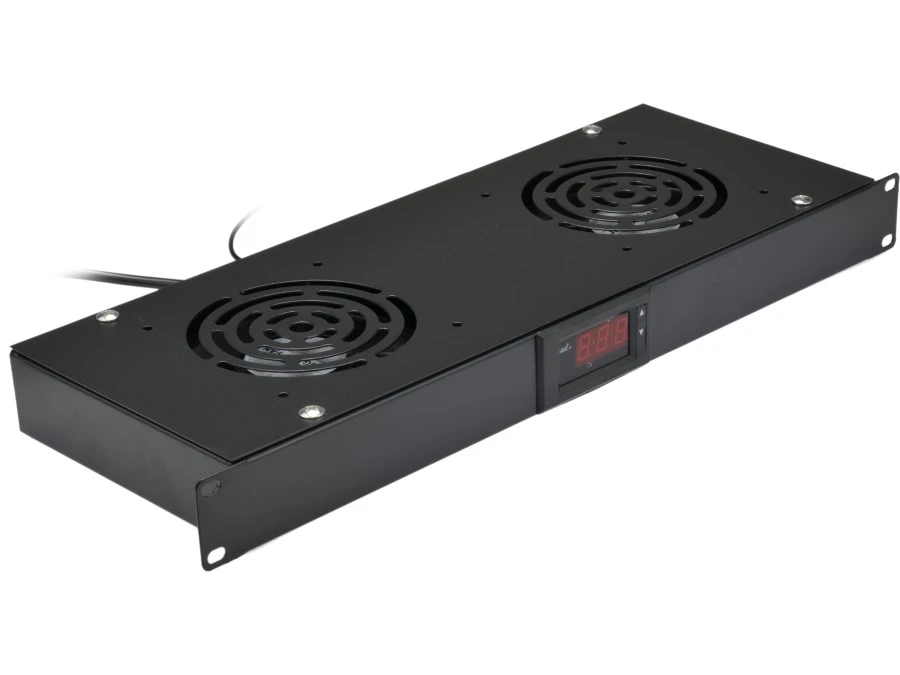 Panel 2x wentylator RACK 19 cali 1U czarny z termostatem NEKU