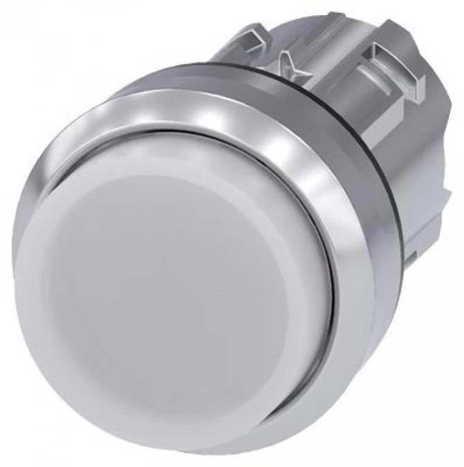 Podświetlany przycisk, 22 mm, okrągły, metalowy, błyszczący, biały, przycisk, podniesiony, ze stykiem chwilowym