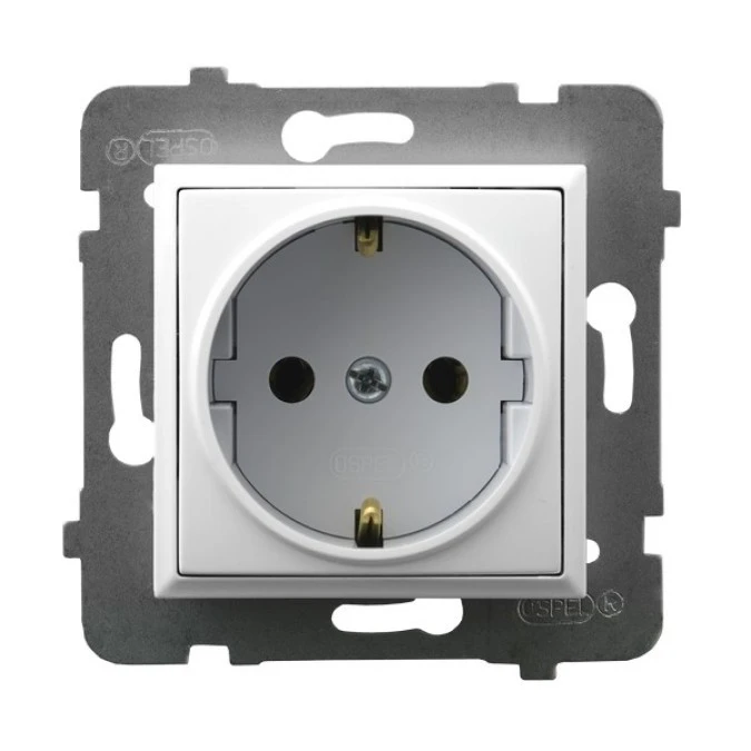 11. AS Gniazdo pojedyncze z uziemieniem schuko z przesłonami białe GP-1GSP/m/00 OSPEL 15.76
