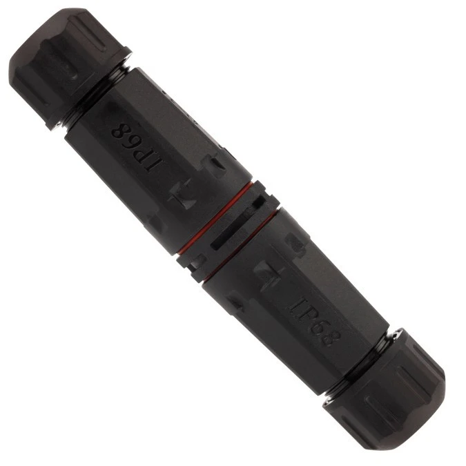 1. Mufa kablowa z dławikami na kable do 2x2,5mm2 hermetyczna IP68 PA66 prosta czarna NEKU 19.10
