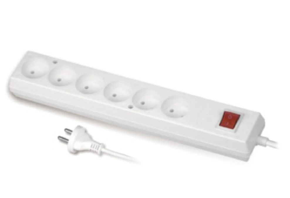 9. Przedłużacz z wyłącznikiem 6-gniazd b/u 10A 1,5m /OMY 2x1/ biały PS-660WS T-109060 28.09