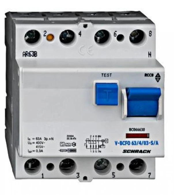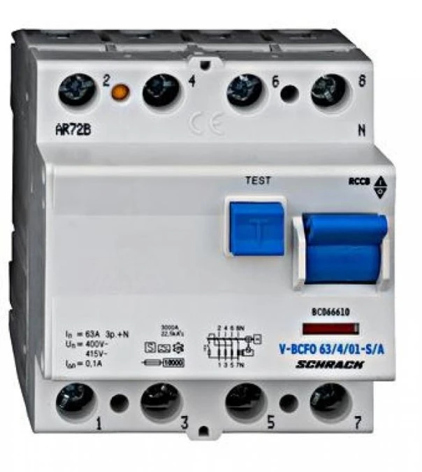 5. Wyłącznik różnicowoprądowy 63A/3+n/100mA,sel.S,typ A,10kAvsf Seria BC 820.07