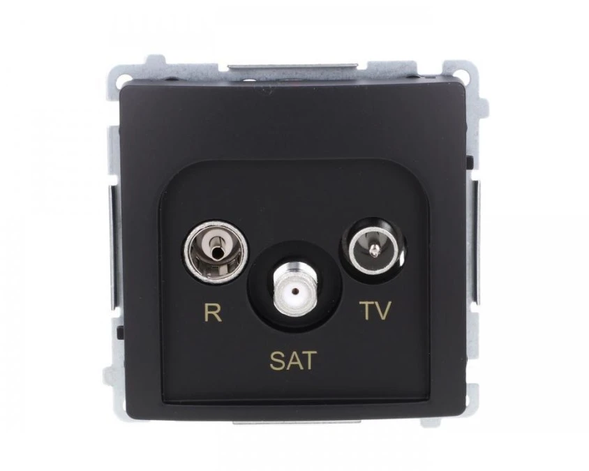 Simon Basic Gniazdo antenowe R-TV-SAT przelotowe (moduł), 1x wejście: 5 MHz–2,4 GHz czarny BMZAR-SAT10/P.01/49