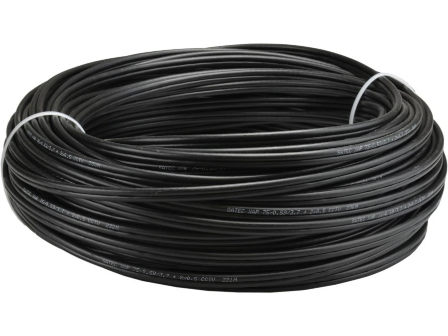 Przewód koncentryczny zewnętrzny do kamer XAP RG59 z zasilaniem 2x0,5 75ohm CCTV 0,59/3,7/6,0 Satec /400m/