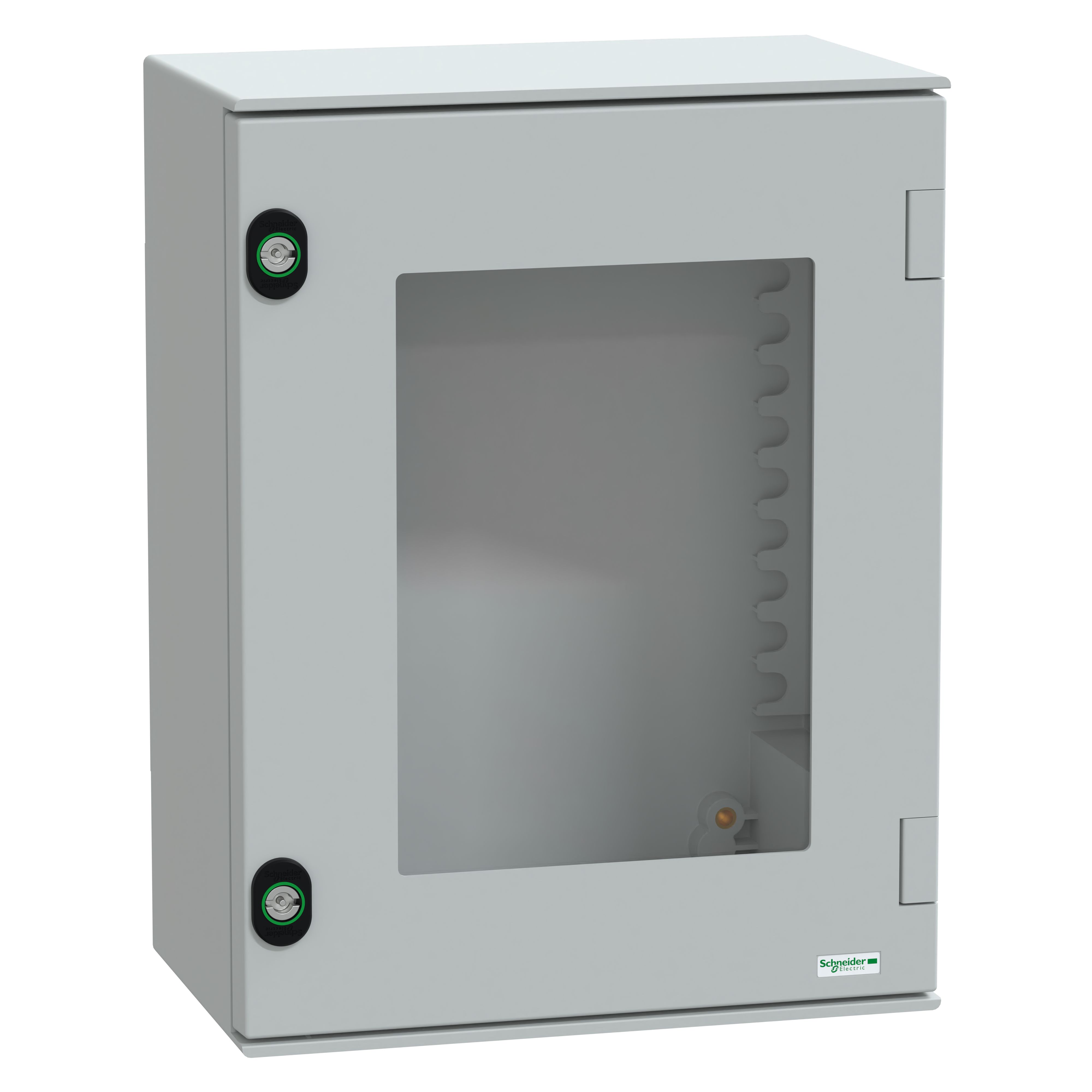 Szafka ścienna rozdzielcza 430 mm 330 mm 200mm PET Schneider Electric, z drzwiami przezroczystymi RAL 7035