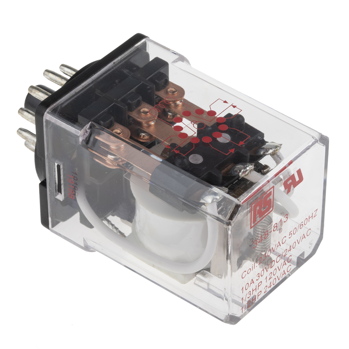 7. Przekaźnik mocy 230V ac 3PDT RS PRO 2.75W, Wciskane 8200Ω Otwór przezierny 78.62