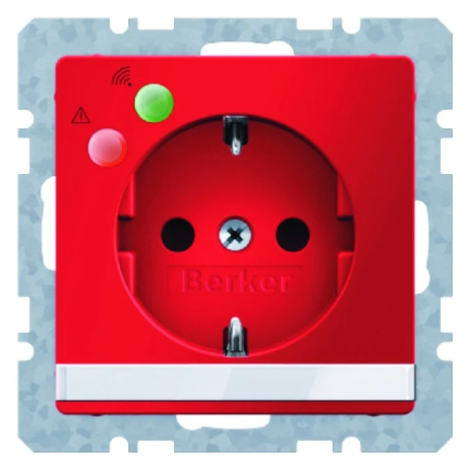 14. Gniazdo SCHUKO z ochroną przepięciową i polem opisowym czerwony połysk S.1/B.3/B.7 Glas 41088962 1050.56