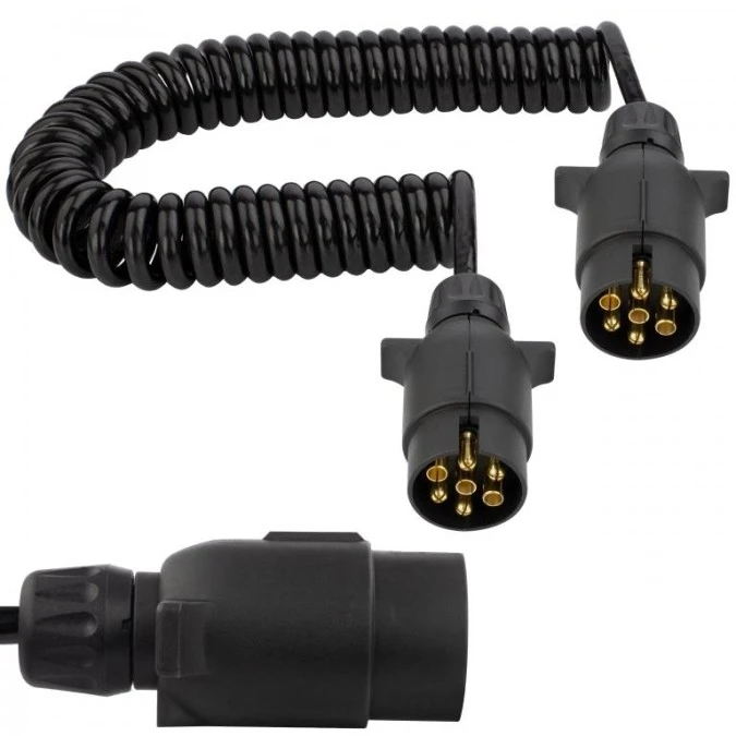 Przewód spiralny QLY-s kabel do przyczepy zakończony plastikowymi wtykami 7-pin 12V 5m